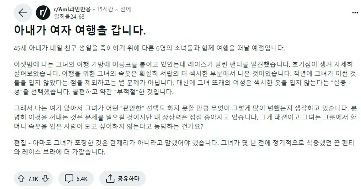 여자끼리 여행 가는데 섹시한 속옷을 가져가는 아내.JPG..