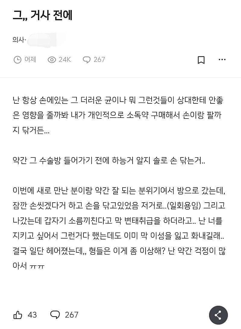 거사 전에 손 씻다가 여자가 도망갔어